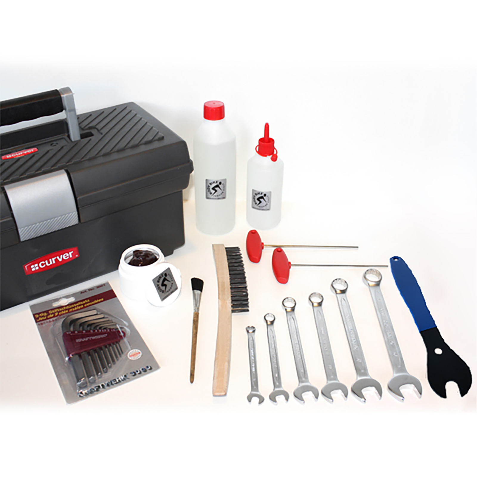 Vi har fundet Body Bike Supreme Connect Tool Box fra Body Bike hos Fitnessengros.dk i kategorien Produkter Reservedele. Denne handy værktøjssæt er perfekt, når du skal vedligeholde din Body Bike Supreme eller Body Bike Connect.Den indeholder et bredt udvalg af værktøj, der alle passer til de to cykelmodeller. Så har du altid det nødvendige ved hånden for at kunne servicere